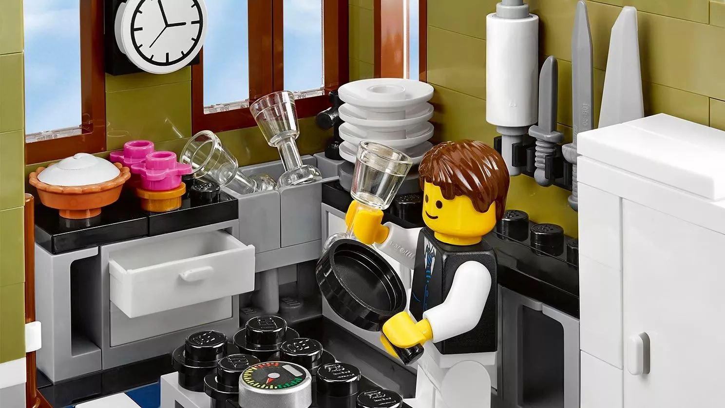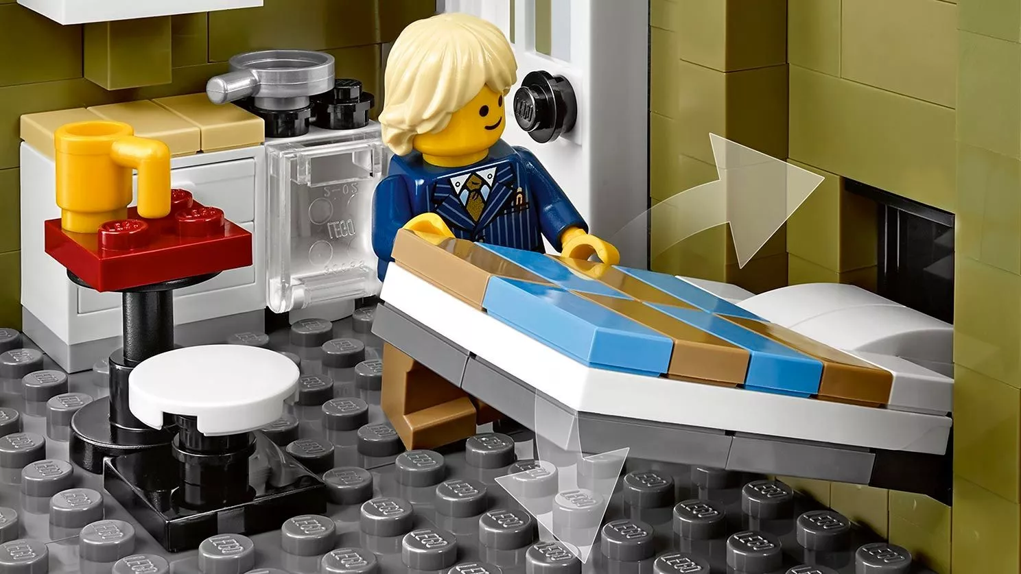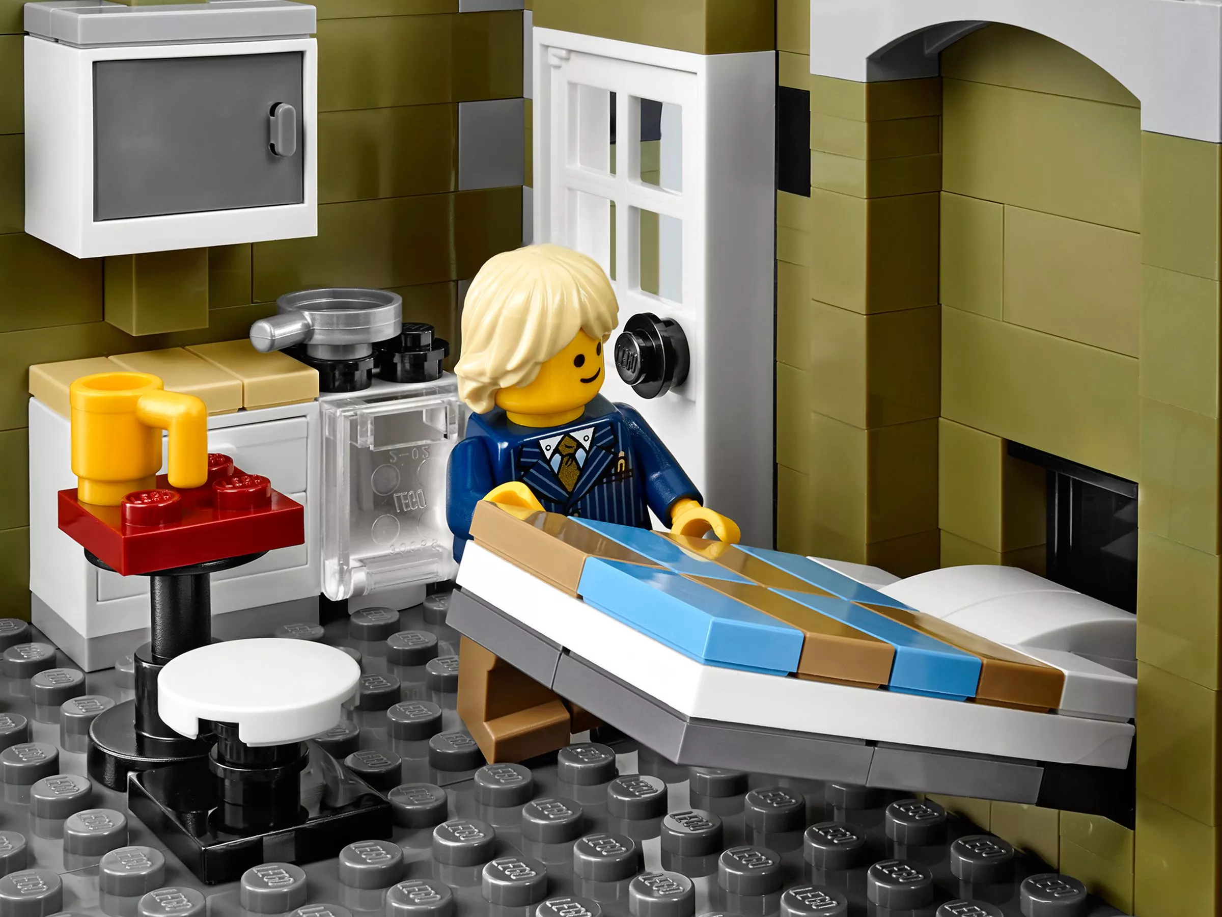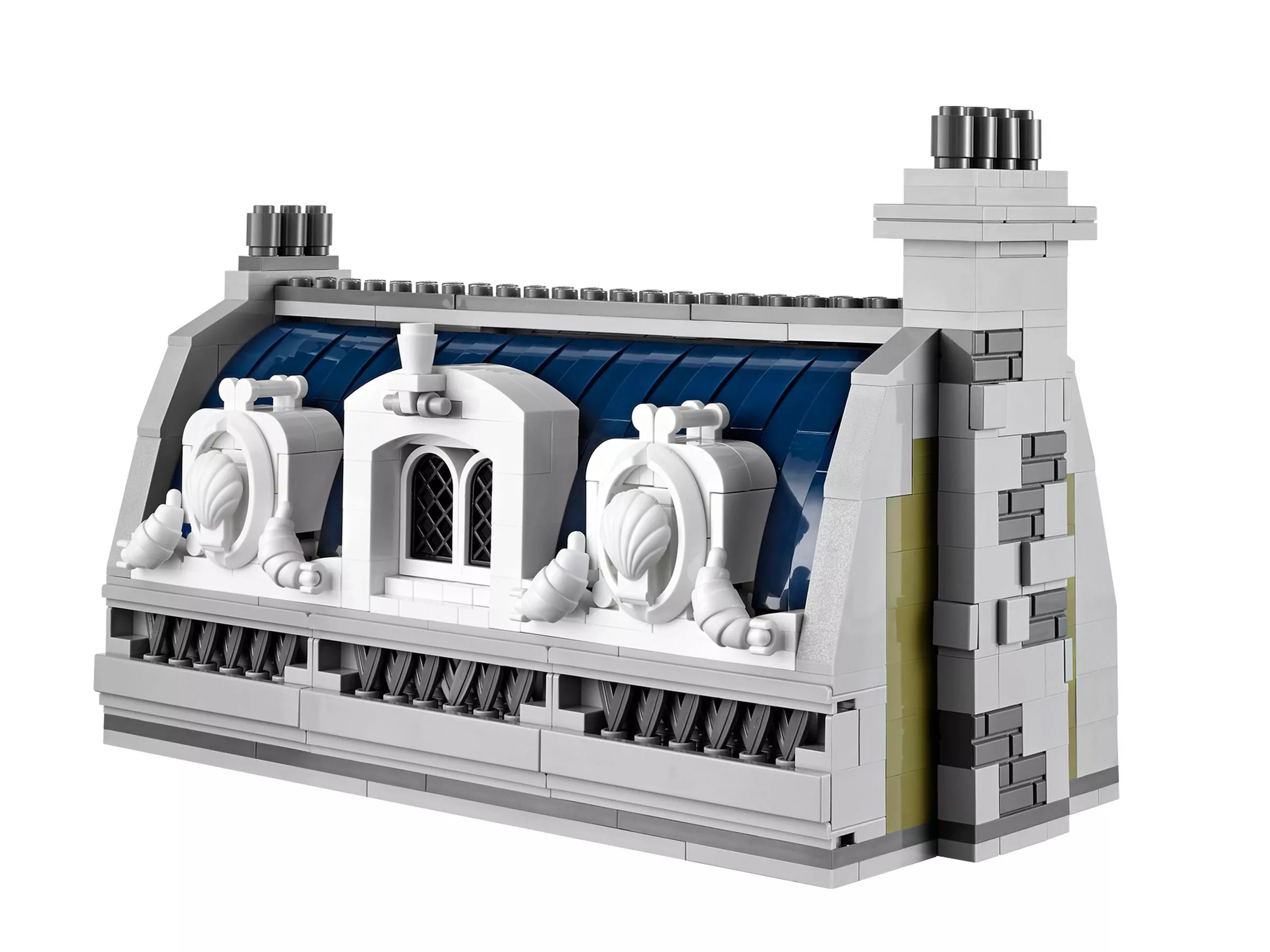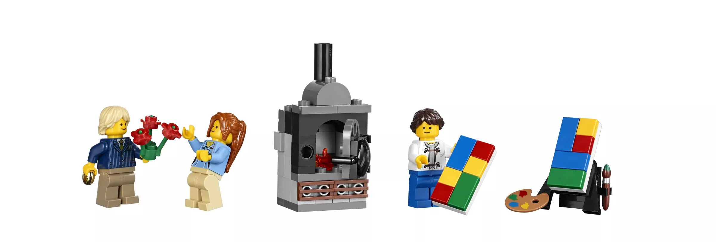 В парижском ресторане очень оживлённо. Снаружи проносится скутер, внутри помещения официант лавирует между столиками, а взволнованный молодой человек готовится сделать предложение руки и сердца! На кухне царит такое же оживление: шеф-повар деловито готовит еду. Это красивое детально выполненное здание – декорация для множества историй. Оно является замечательным дополнением к серии модульных зданий. Парижский ресторан имеет полностью укомплектованную, выложенную плиткой сине-белого цвета кухню со столовыми приборами и уютное помещение со шкафом-кроватью, маленькой кухонькой и камином. На верхнем этаже располагается комната-студия художника, в которой есть чугунный обогреватель, мольберт, кисть и два произведения кисти амбициозного художника. Снаружи лестница ведёт на террасу на крыше, украшенную подвесными фонарями и цветами, где можно пообедать на открытом воздухе. Удивительная модель парижского ресторана включает даже фасад, круассаны, моллюски и перья, которые воссоздают атмосферу Парижа. В набор входят 5 минифигурок: шеф-повар, официант, девушка и романтическая пара.