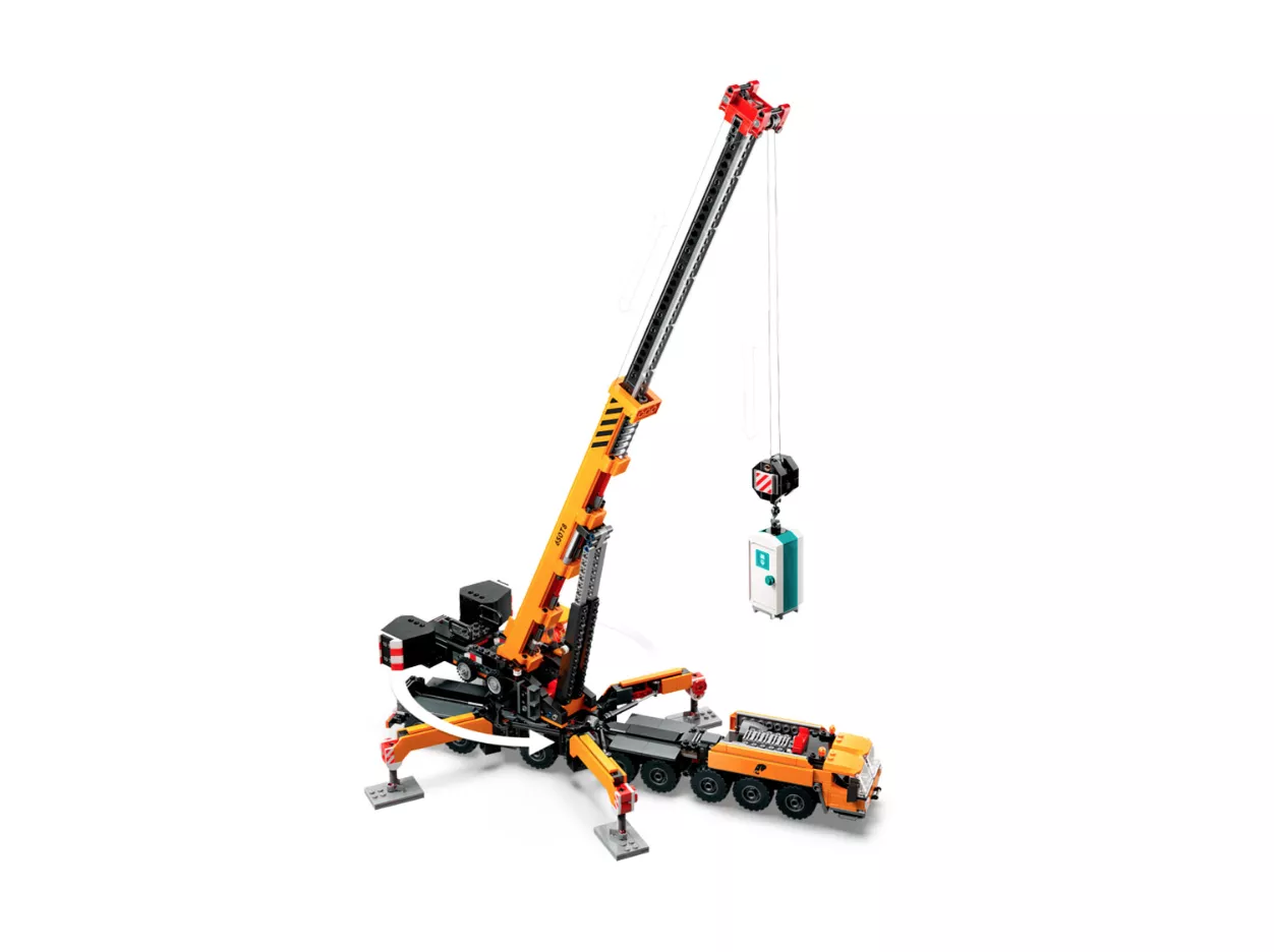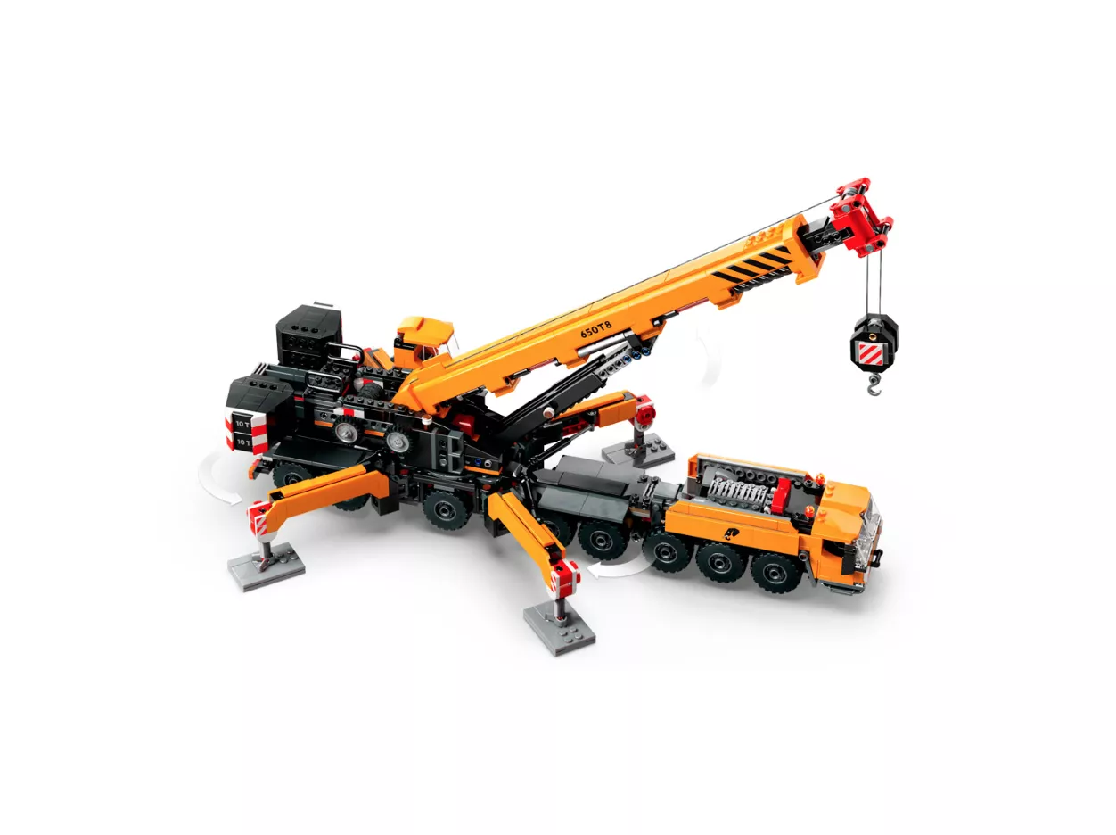 • Набор состоит из 1116 деталей. Размеры готового набора с выдвинутой стрелой и опорами составляют 68 см в высоту, 48 см в длину и 25 см в ширину.