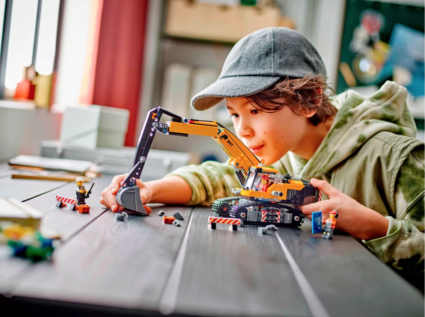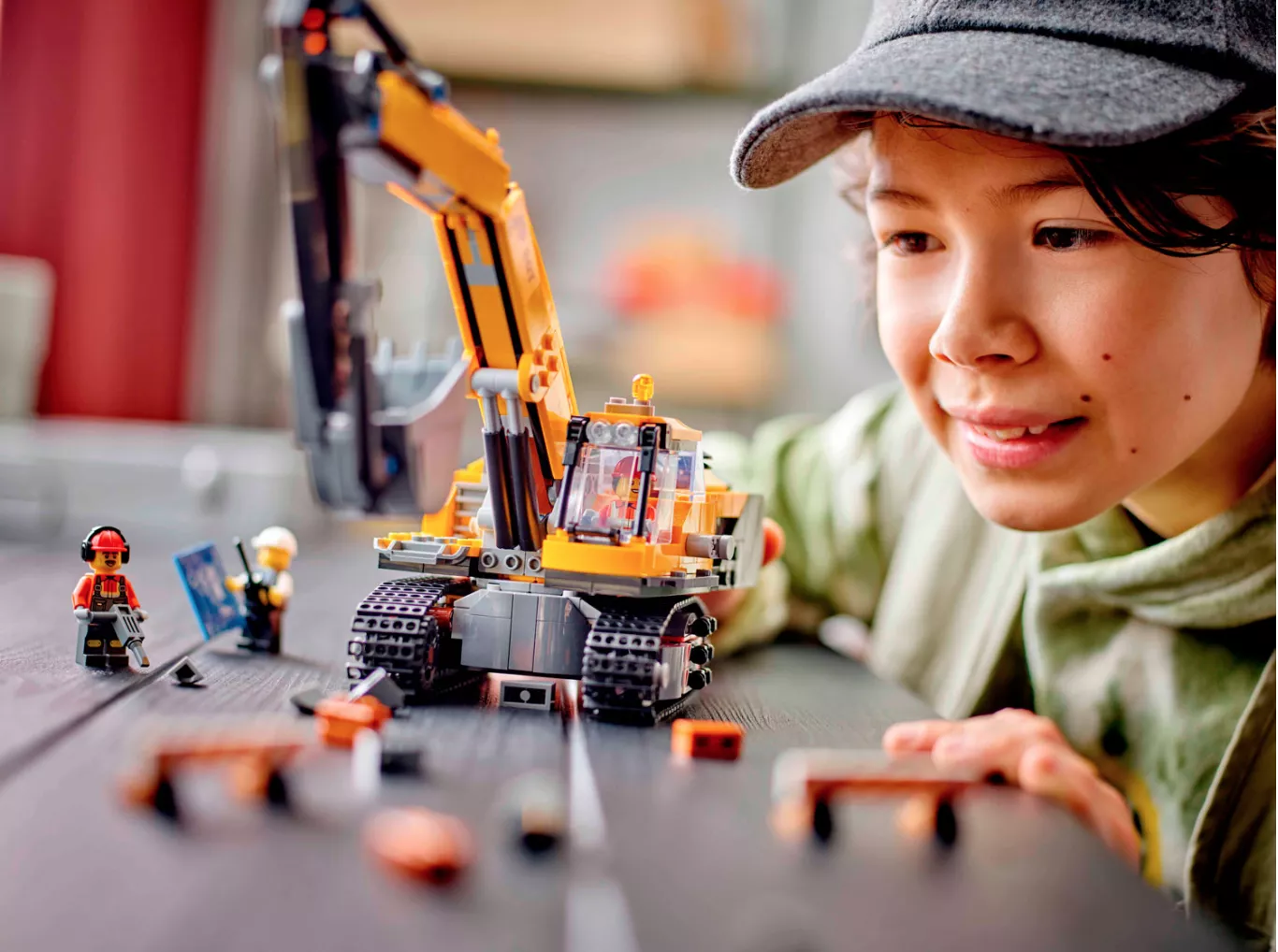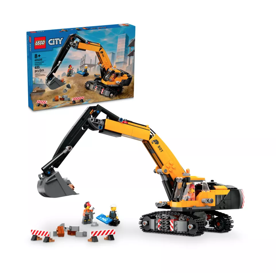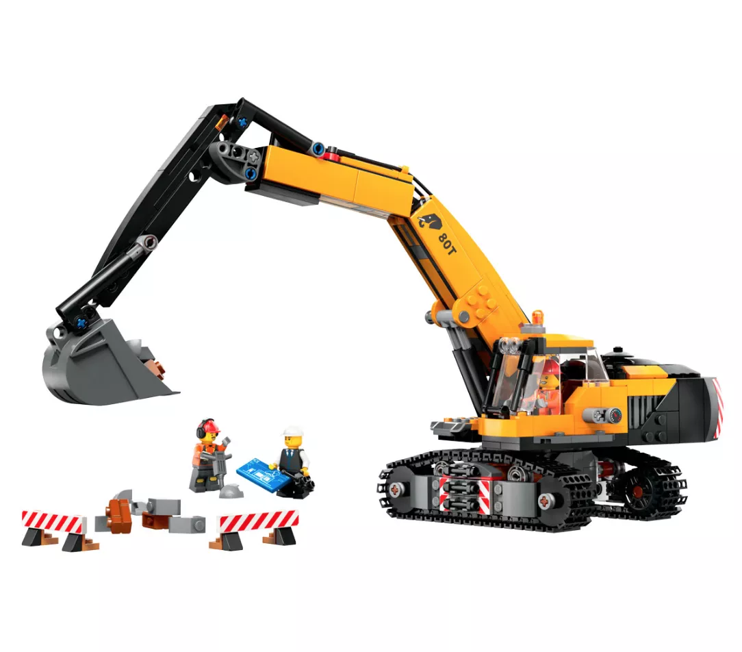 • Игрушечный экскаватор. Любителям крутых строительных машин в возрасте от 8 лет понравится набор LEGO CITY «Желтый строительный экскаватор» (60420).