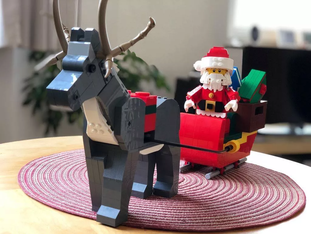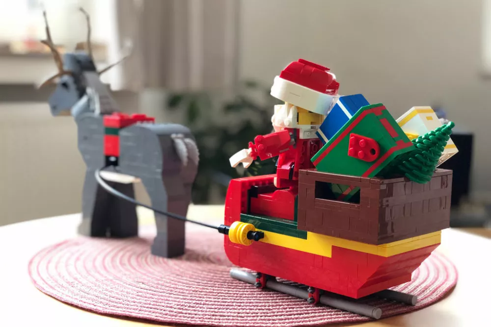 Из деталей набора Вам предстоит собрать рождественские сани, запряжённые оленем, Санту и подарки. Вся постройка будет выполнена в миди масштабе. Примерные размеры результата Вашего старания выльются в 44,5 см в длину, 28 см в высоту и 14,5 см в ширину.