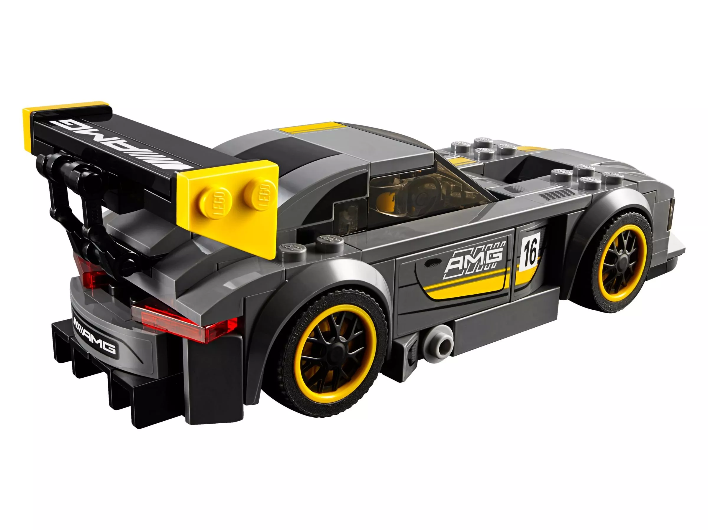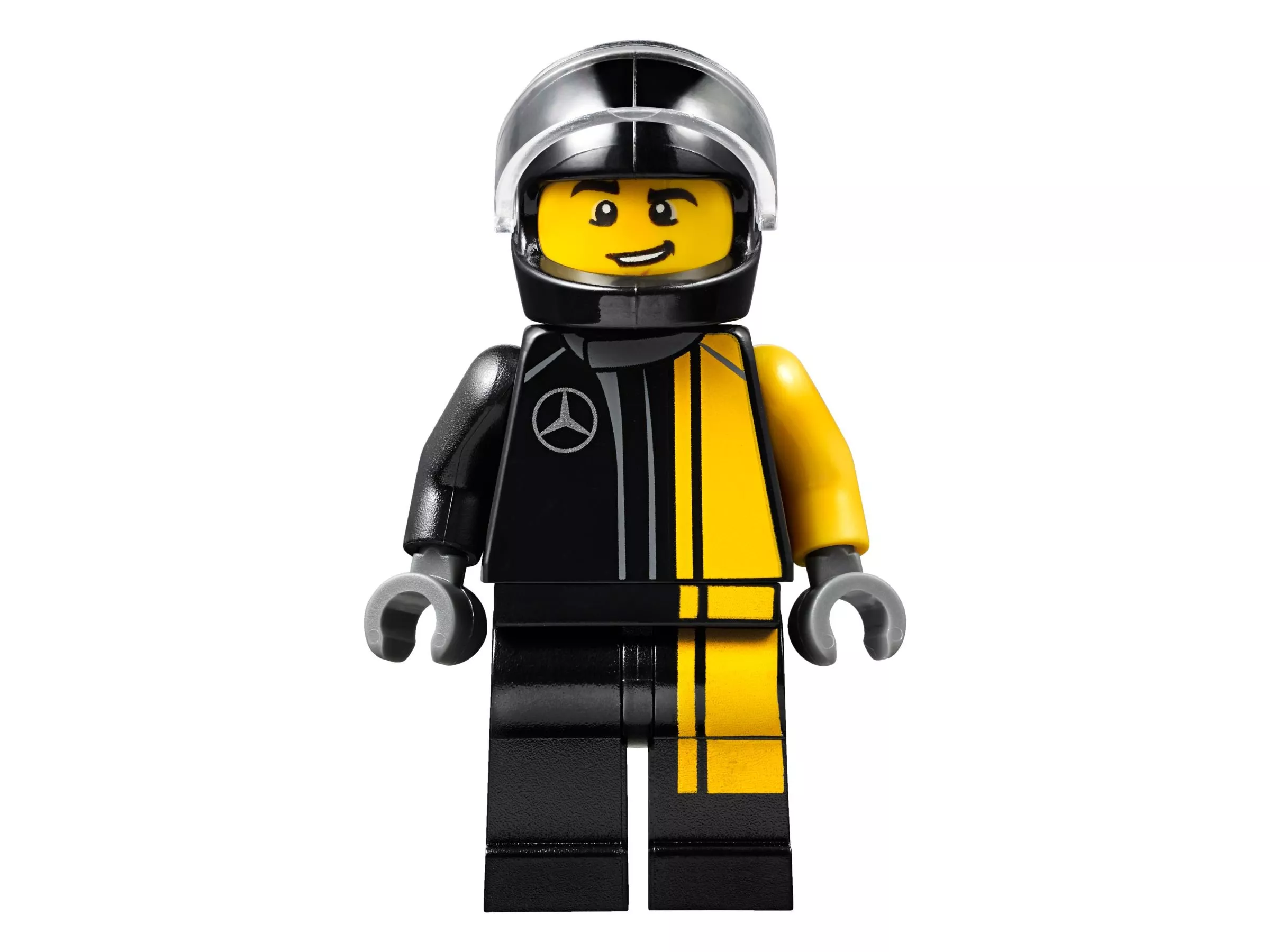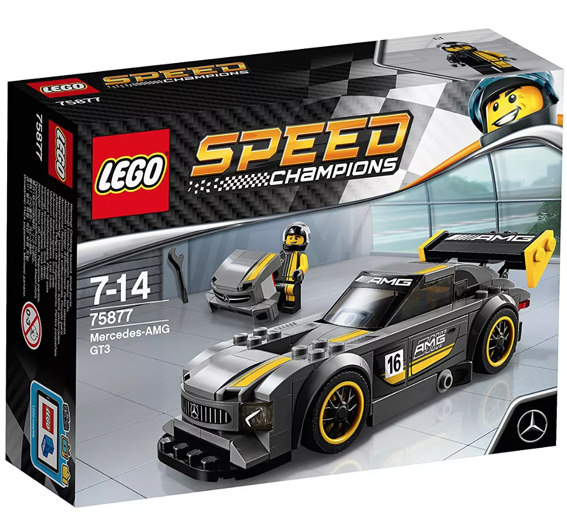 Наслаждайтесь скоростью с собранным из кубиков Mercedes-AMG GT3. Динамичный дизайн со стремительными желтыми полосками на серо-черном кузове подчеркивает лихой характер немца. Особенность модели — возможность трансформации из спортивного автомобиля в гоночный суперкар. Замените капот на другой, с меньшим бампером, и смело выезжайте с городского автобана на гоночную трассу. Не забудьте поставить съемный спойлер. Он значительно улучшает аэродинамические характеристики машины и помогает максимально безопасно маневрировать на сложных участках. Модель имеет тонированную кабину, сняв крышу с которой можно заглянуть внутрь и рассмотреть место водителя и рулевое управление. Дополнительной функциональной особенностью суперкара являются колёса с прорезиненными рифлёными шинами и съёмными чёрными дисками.