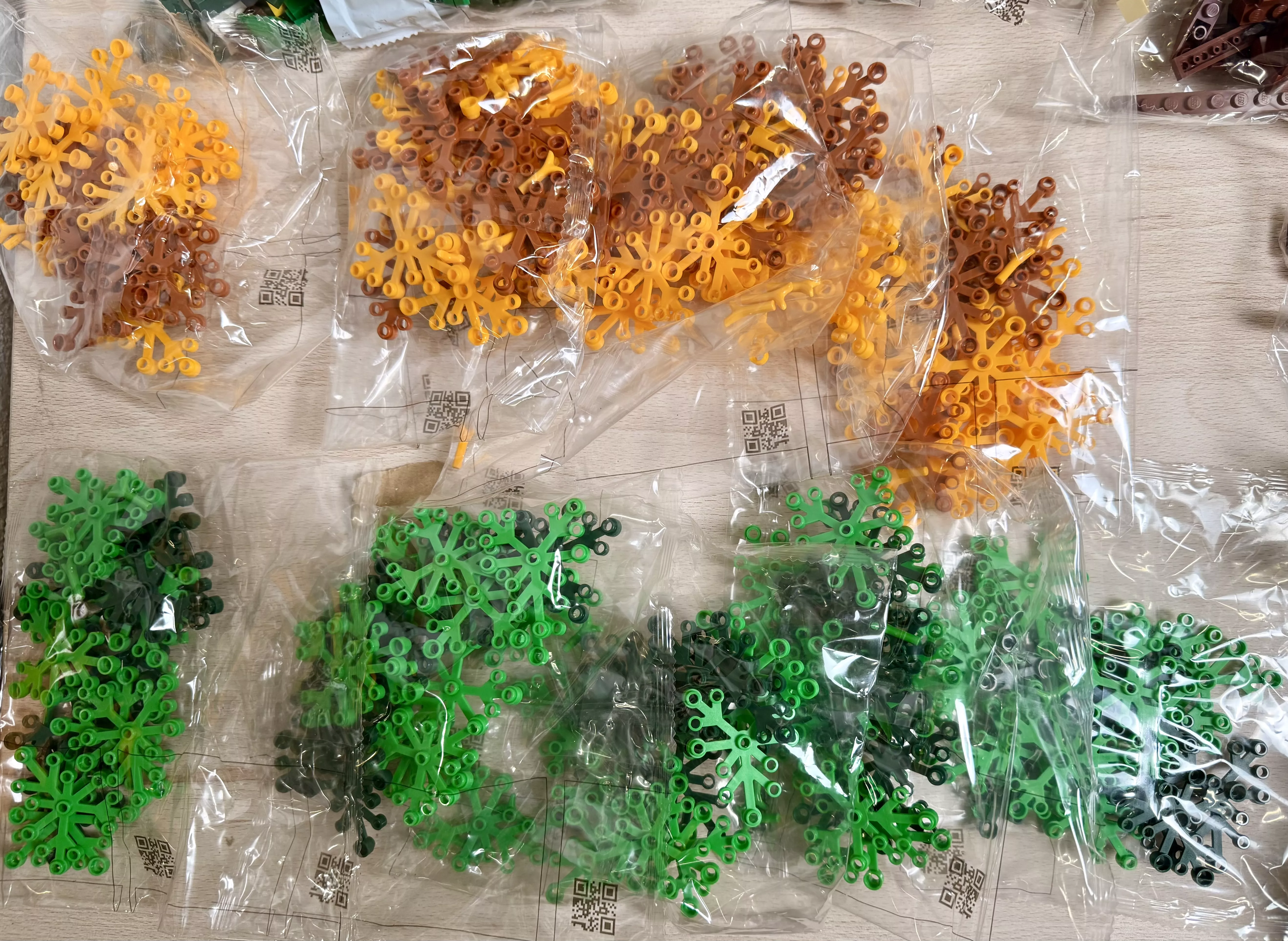 В наборе предусмотрены сменные элементы листвы, что позволяет менять внешний вид дерева с летнего на осенний. Модель насыщена аксессуарами: мебель, костёр, качели, элементы интерьера и ландшафта, создающие уютную и живую сцену.